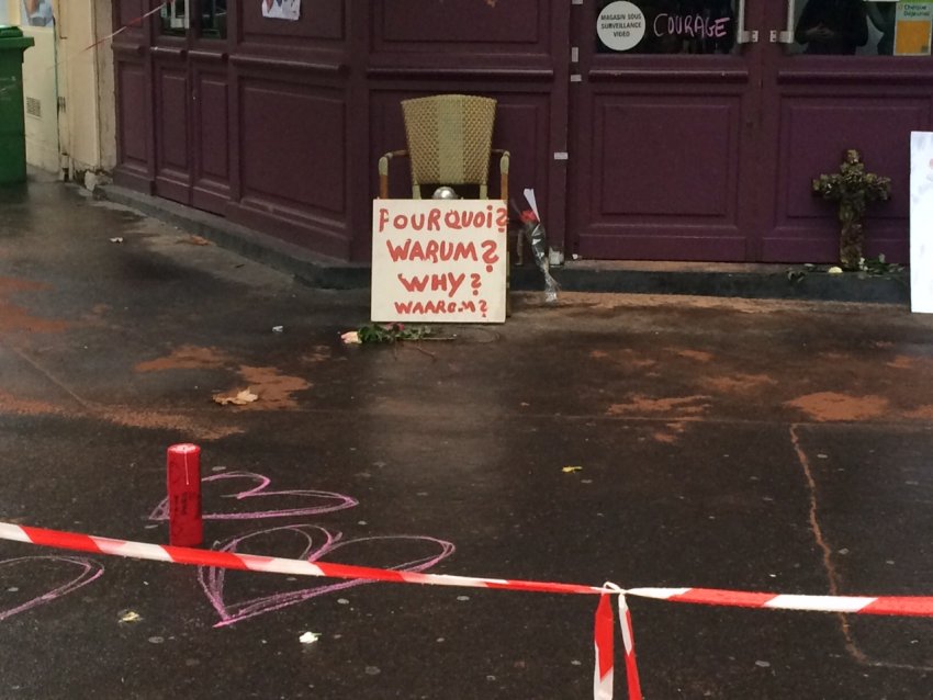 Przy Bataclan jest całe miasteczko wozów transmisyjnych. Dziś na miejsce ataków przyszli muzułmanie, którzy czuli się w obowiązku wytłumaczyć zarówno mediom, jak i postronnym osobom, że islam nie jest równoznaczny z terroryzmem.