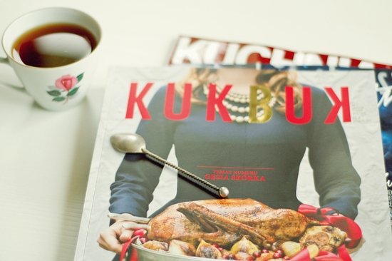 Przez lata jedynym godnym uwagi tytułem traktującym o jedzeniu był magazyn Kuchnia, dwa lata temu pojawiła się polska wersja skandynawskiego pisma Food & Friends, zaś u schyłku jesieni 2012 roku naszym oczom ukazały się Magazyn Smak i KUKBUK. Ten pierwszy jest okołokulinarnym kwartalnikiem „o kulturze jedzenia i gotowaniu” (cyt.: redakcja magazynu). Niektórzy – pewnie przez zdjęcia modnych gotujących wąsaczy z tatuażami - zarzucają mu, że jest hipsterski, dla mnie to ładnie zaprojektowane pismo z ciekawymi artykułami. Nie zaglądam tu po przepisy, a po teksty i dobry design. KUKBUK to z kolei pismo, które mam ochotę zjeść. Apetyczne zdjęcia, kuszące przepisy okraszone są dobrymi artykułami i ubrane w piękną prostą formę (czcionka, papier, układ zdjęć). Niewątpliwą zaletą pisma jest fakt, że dostrzegł potencjał drzemiący w blogosferze kulinarnej, angażując do współpracy blogerki (czego pisząca ten tekst, tworząca dwie rubryki w KUKBUKU jest żywym przykładem).