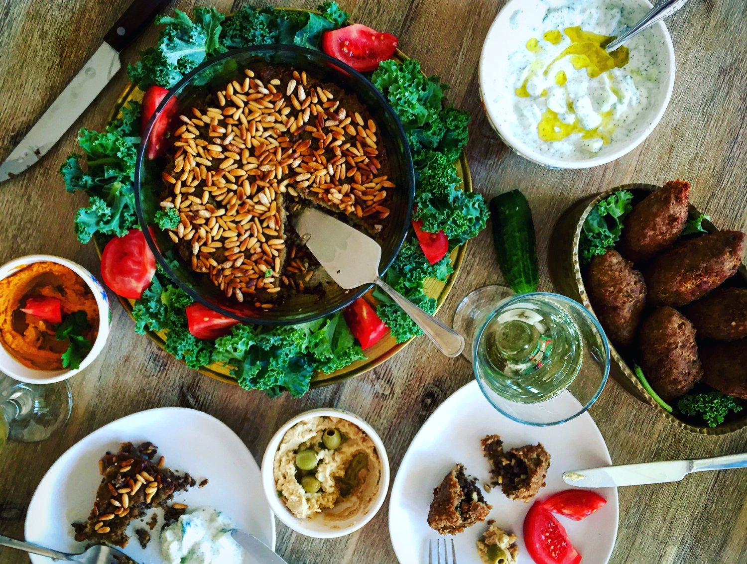 Jednym z zacnych dań było Kebbeh. Typowo mięsna potrawa. Przepis który podajemy to tzw. Kebbeh 'eras - specjalność mojej babci, która często przygotowywała to danie na różne uroczystości rodzinne. Na werandzie rozdrabniała mięso, tłukąc je w specjalnym moździerzu, pozbywając się uprzednio wszystkich żyłek. Tak przygotowane mięso ubijała ponownie z burghulem, żeby stworzyć mięsne ciasto. To wszystko było dla nas jak z bajki i też tak smakowało.