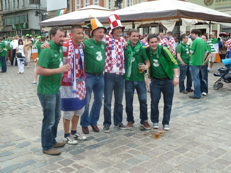 Fotograf ze mnie żaden (pracuję nad tym!), ale pomimo tego chciałbym się podzielić kilkoma zdjęciami, które zrobiłem w czasie gdy Poznań celebrował EURO 2012 z udziałem Irlandczyków, Chorwatów i Włochów. Poznańskie Stare Miasto tętniło życiem, było głośno i żywiołowo, śpiewano i pito w nadmiarze. Urzekła mnie radosna atmosfera panująca w centrum Poznania; atmosfera doskonale odzwierciedlająca, jak piłka nożna łączy ludzi...