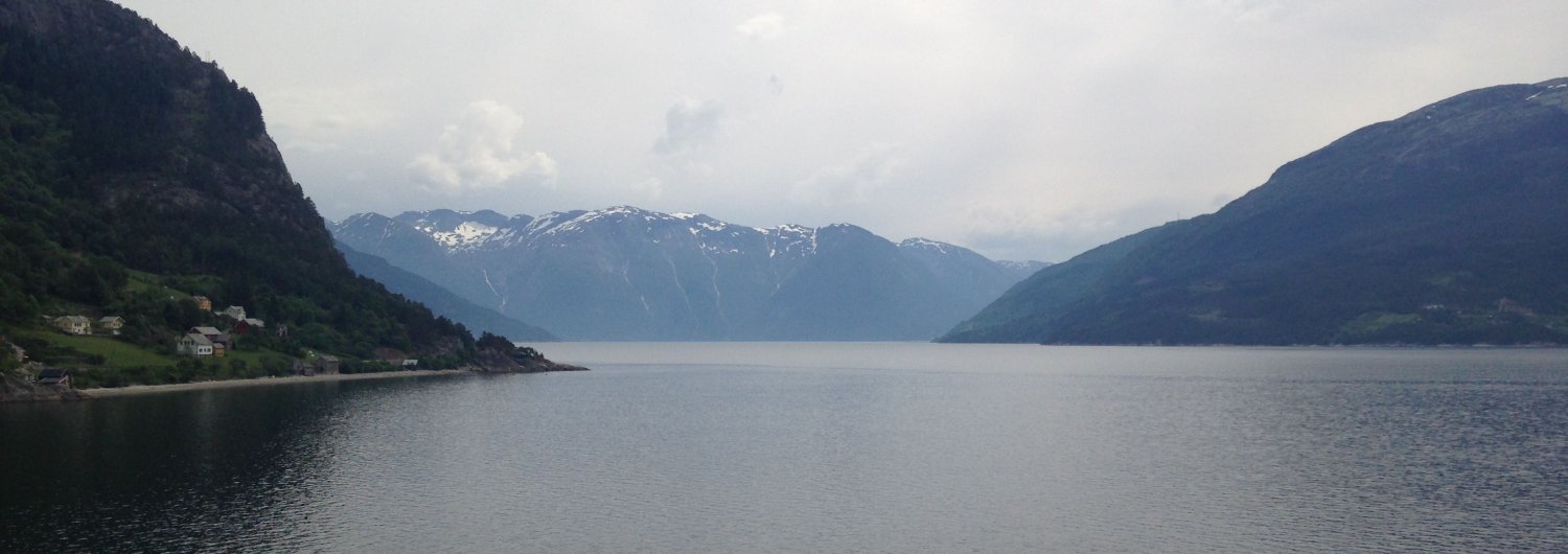 Im dalej w głąb lądu, tym zimniej. Jedziemy wzdłuż jednego z brzegów Hardangerfjordenu, po przeciwnej stronie wody bezpośrednio stykają się ze stromymi, ośnieżonymi pasmami czarnego, nieprzystępnego granitu, otulonego kłębami zimnych, wilgotnych chmur. Norweskie lato.