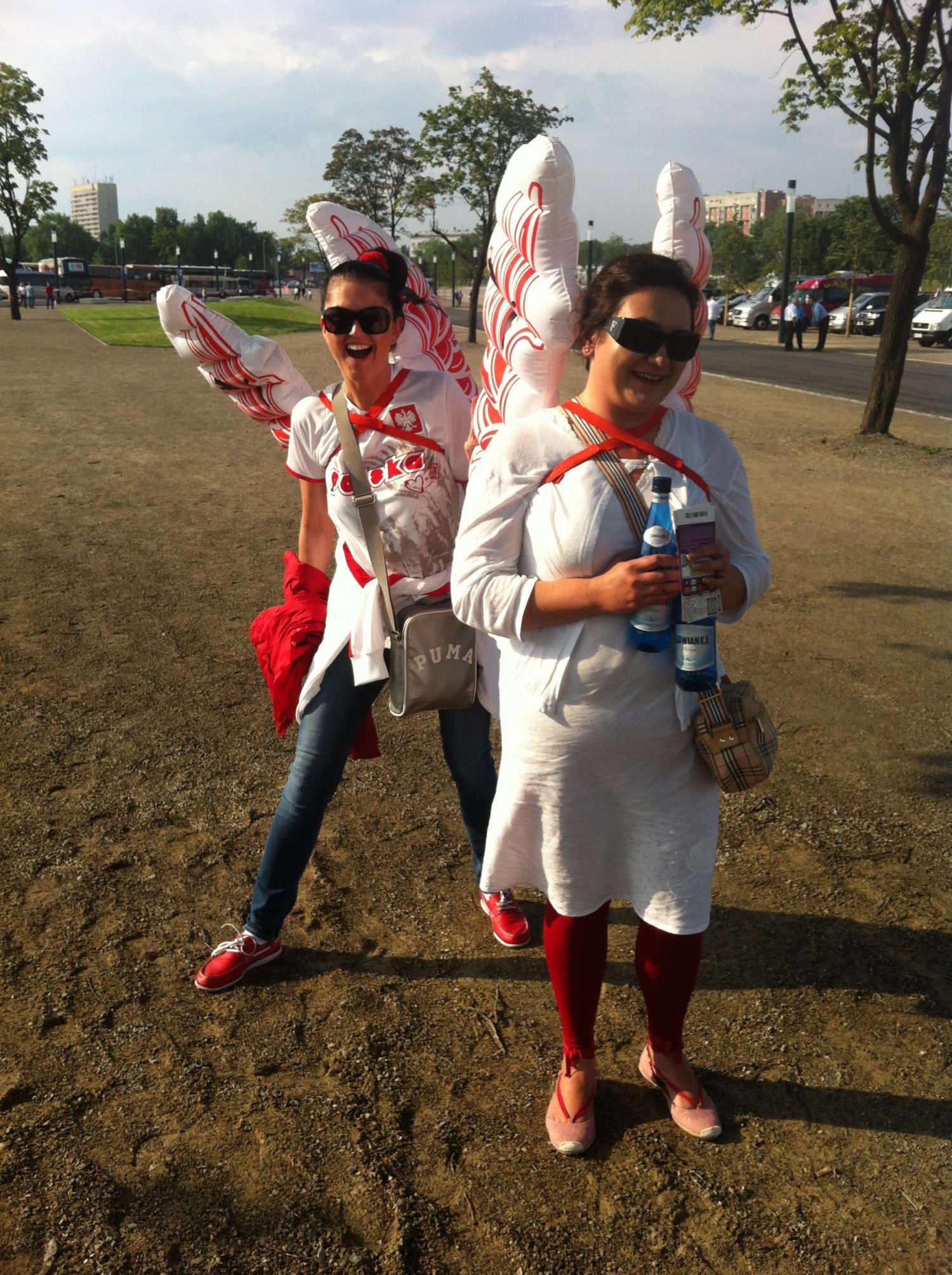 Niestety, na bramce, gdzie sprawdzali bilety, bardzo uprzejmi panowie sprawdzacze bardzo uprzejmie poinformowali nas, że skrzydła mają logo. A logo jest firmy, która nie jest oficjalnym sponsorem EURO 2012. A regulacje UEFA są takie, że nie można mieć gadżetów innej firmy. Koszulka ok, bo przecież nie będą nikogo rozbierać. Ale skrzydła - co to to nie! Musiałyśmy oddać anielskie atrybuty do depozytu. Za pokwitowaniem. Jakim? Zobaczcie sami...
