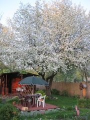 Zazieleniło nam się, nieprawdaż? Z dnia na dzień działka z szarej, nijakiej zamieniła się w oazę zieleni. Oazę wypełnioną śpiewem ptaków. Ostatnio zaobserwowałam rudziki, szpaki, nieodłączne sikorki i sójki. Kwitnące krzewy i drzewa oblegają trzmiele, pszczoły i osy.