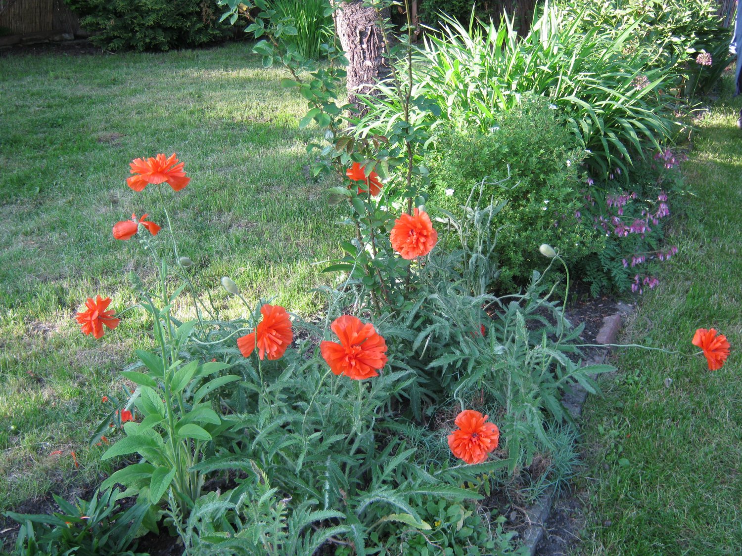 W czerwcu wszystko rośnie "w oczach". Z dnia na dzień zmienia się nasz ogród. Równie szybko rośnie trawa, którą należałoby kosić przynajmniej raz w tygodniu, ja ograniczam się do koszenia co 10 dni . Skoszoną trawę po części rozsypuję na grządki , jako ściółkę, resztę po wyschnięciu dodaje do kompostu.