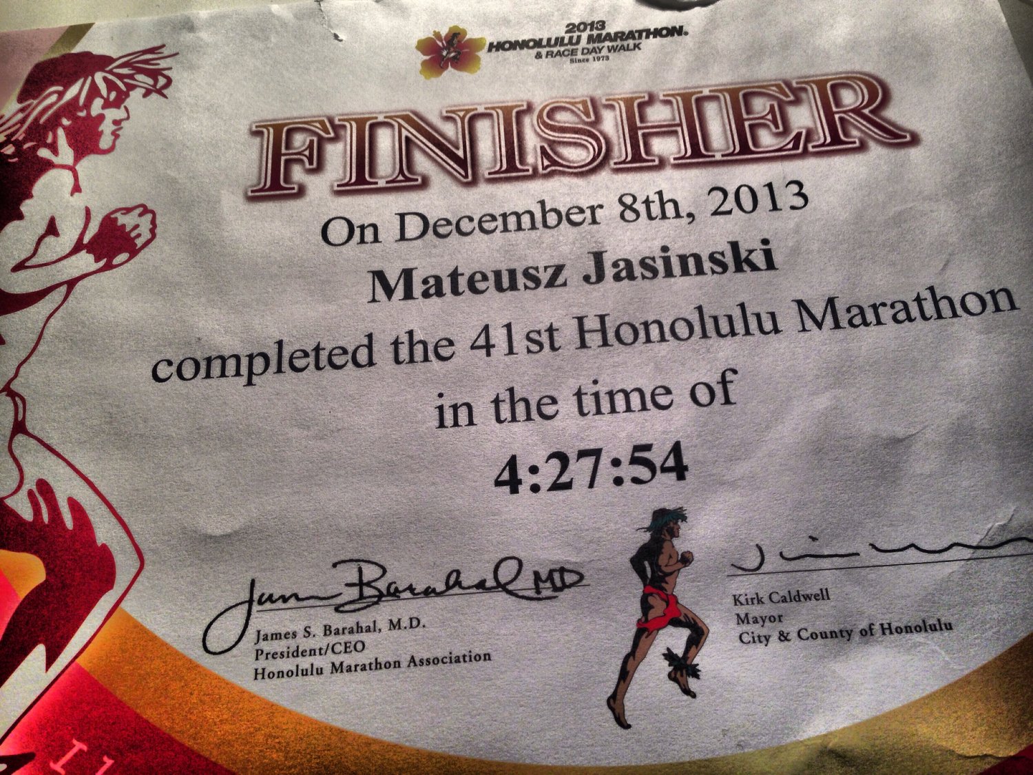 Dostałem piękny list! A w nim dyplom za mój najwolniejszy i jednocześnie najpiękniejszy maraton w życiu. Bo dobry czas, to nie rekord życiowy, ale przede wszystkim chwile, które zapamiętasz na zawsze!