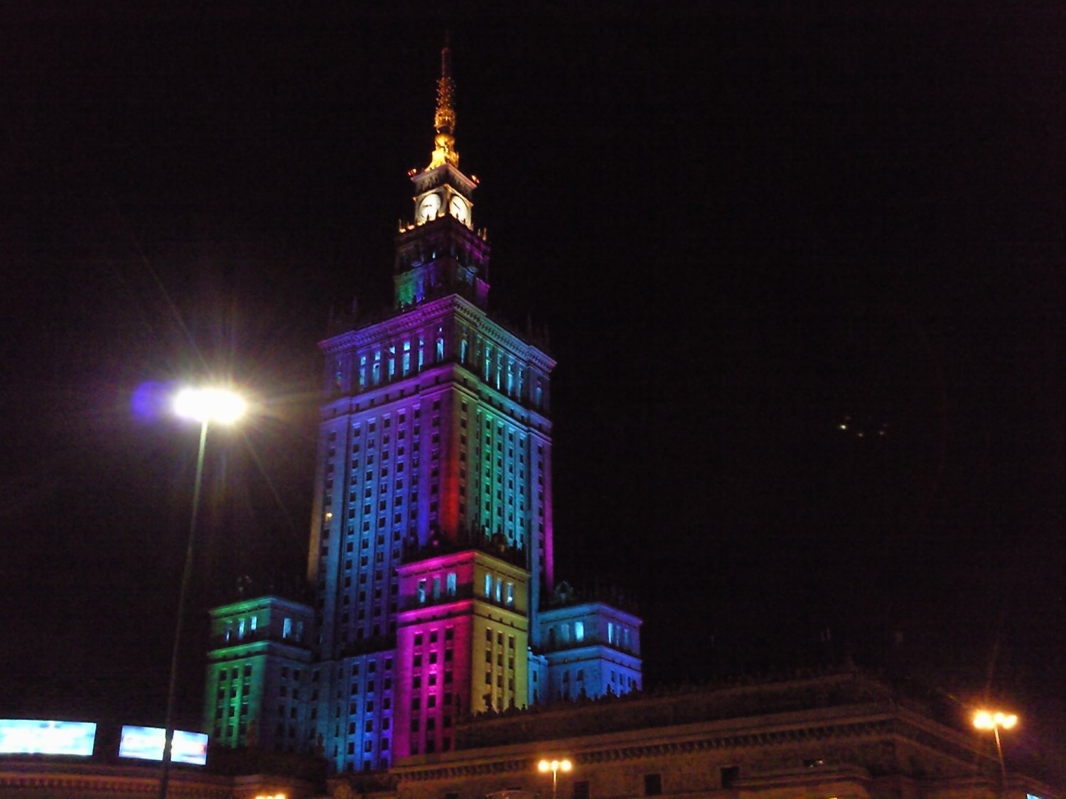 Pałac Kultury i Nauki w Warszawie na kolorowo. Święto?