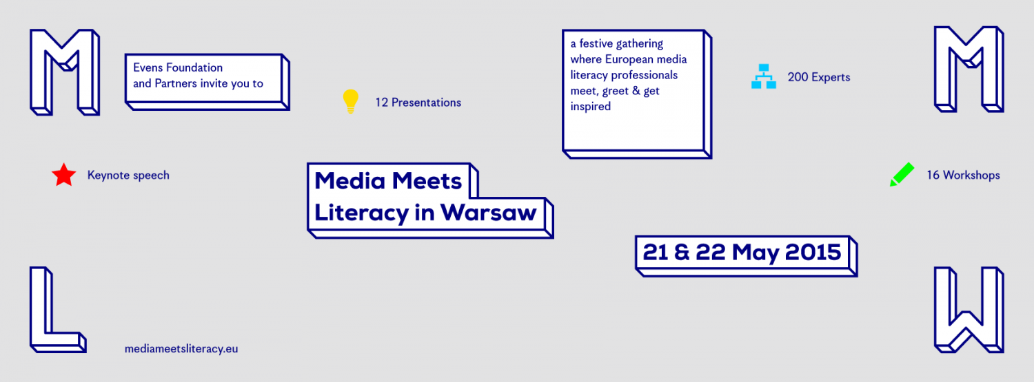 21 i 22 maja w Warszawie odbędzie się Media Meets Literacy - organizowana przez Fundację Evens międzynarodowa konferencja o edukacji medialnej i cyfrowej w Europie. 200 ekspertów wspólnie poszukiwać będzie odpowiedzi na pytania o najlepsze praktyki edukacji medialnej, m. in. jak wykorzystać media do generowania społecznej zmiany i zwiększania partycypacji obywatelskiej? Jak budować oddolny ruch na rzecz edukacji medialnej? Jak współpracować z sektorem komercyjnym, mediami instytucjonalnymi i administracją publiczną?