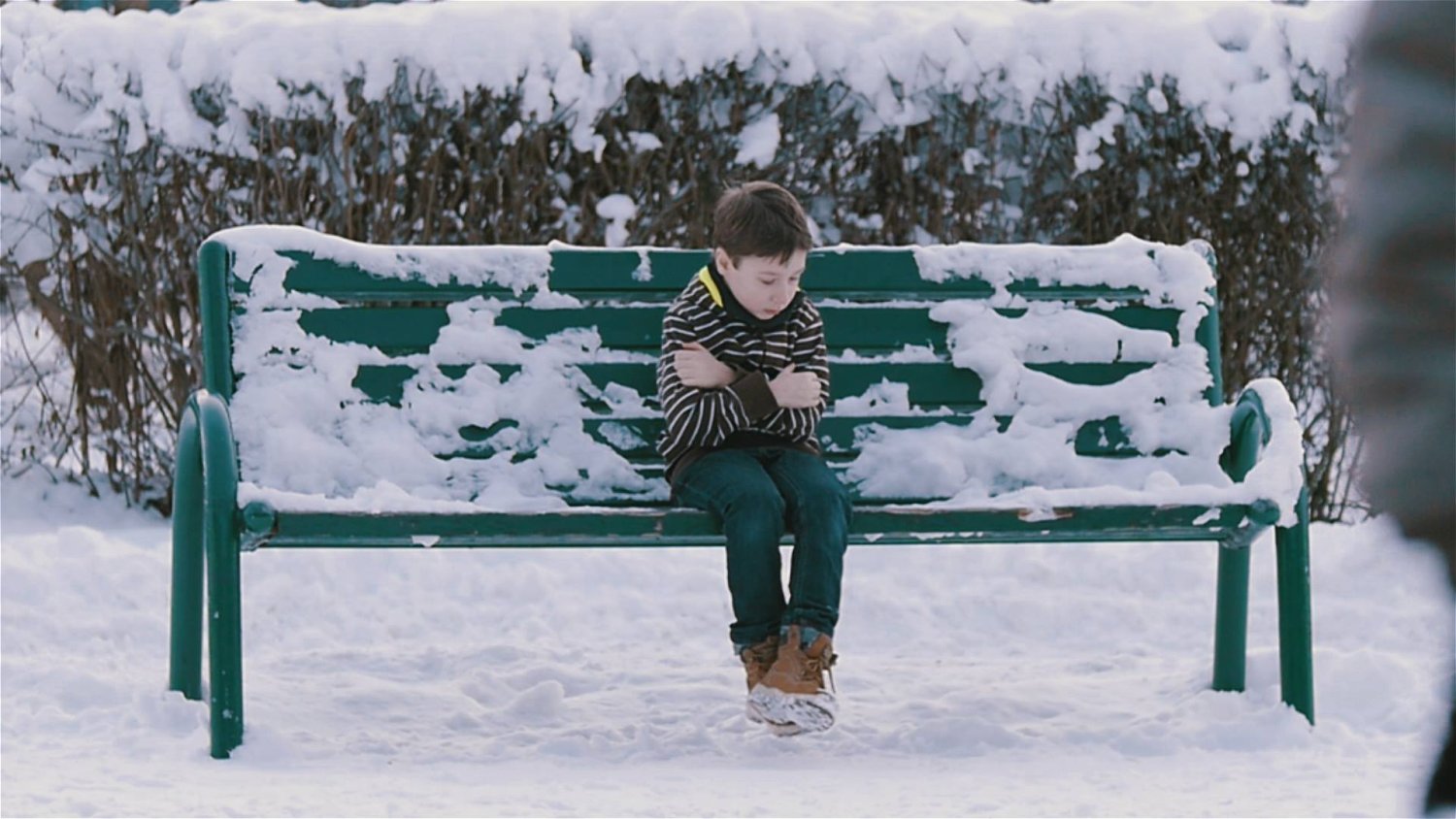 Minusowa temperatura. Chłopiec siedzi samotnie na ławce, bez kurtki. Przed kinem a potem przed kościołem. Brzmi znajomo?