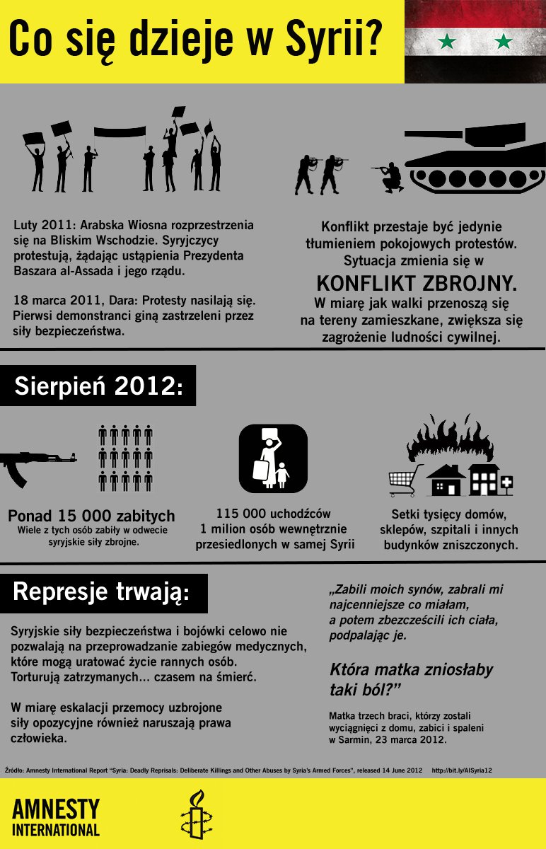 Ponad 15 tys. zabitych, 115 tys. uchodźców i milion osób wewnętrznie przesiedlonych to zdecydowanie za mało dla „światowych potęg”, aby podjąć działania na rzecz zmiany sytuacji w Syrii. Rada Bezpieczeństwa pozostaje sparaliżowana, a powszechne wyrazy potępienia wygłaszane przez wielu polityków pozostają bez jakiegokolwiek echa. Początkowe „tłumienie protestów opozycji” w Syrii przerodziło się w regularny wewnętrzny konflikt zbrojny, w rezultacie którego każdego dnia na ulicy giną niewinni ludzie. A świat się przygląda i tylko kiwa palcem.