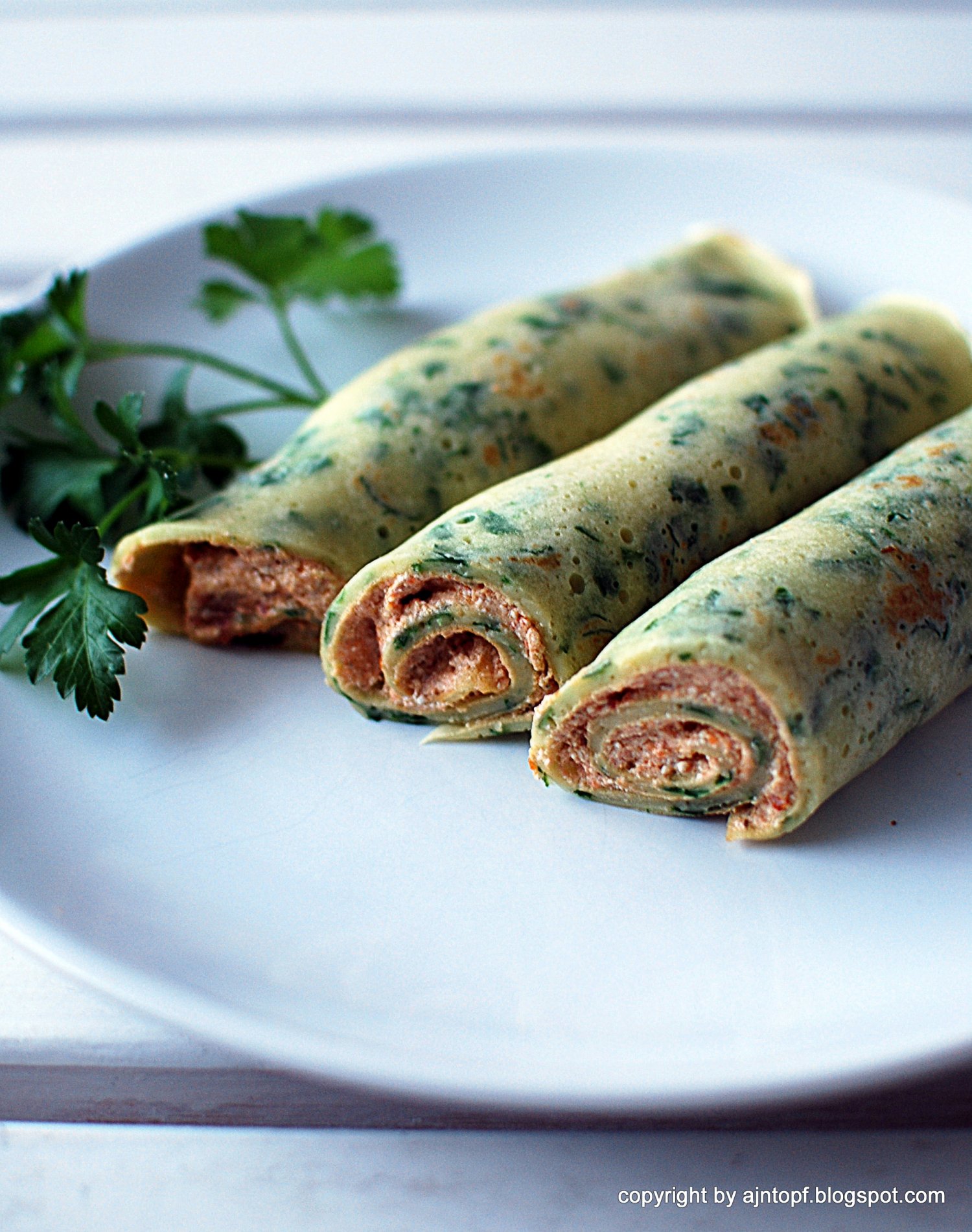 Na przepis pasty twarożkowej z kuminem wpadliśmy ostatnio na stronach magazynu Smak. Wzbogaciliśmy ją oliwą i postanowiliśmy skonsumować w naleśnikach, trochę innych, bo...pietruszkowych :)