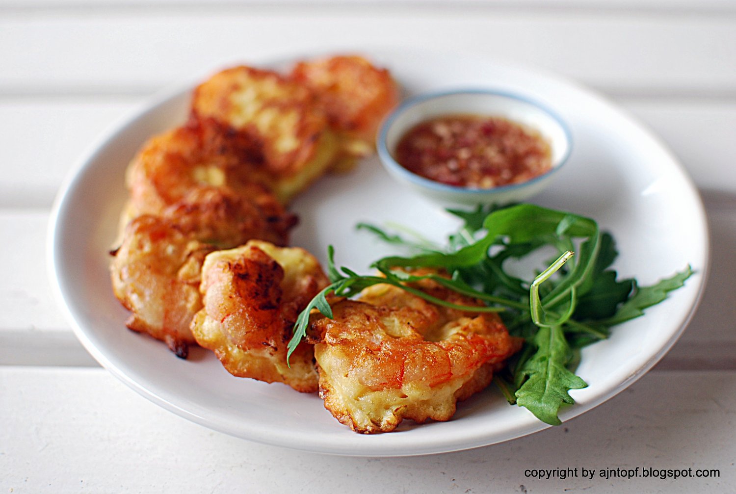 Na patelni rozgrzejcie sporo oleju, nakładajcie łyżką porcję krewetki wraz z sosem. Smażcie po ok. 2 min z każdej strony. Placki wykładajcie na talerz wyścielony ręcznikiem papierowym.
