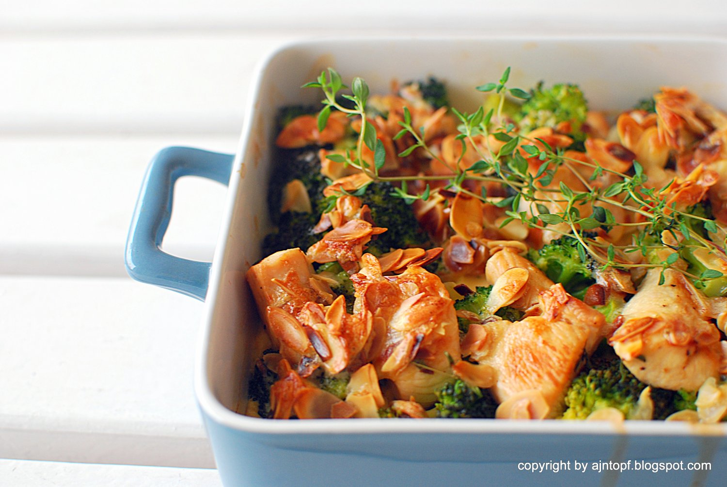 Naczynie żaroodporne posmarujcie masłem i przełóżcie do niego kurczaka z brokułami.