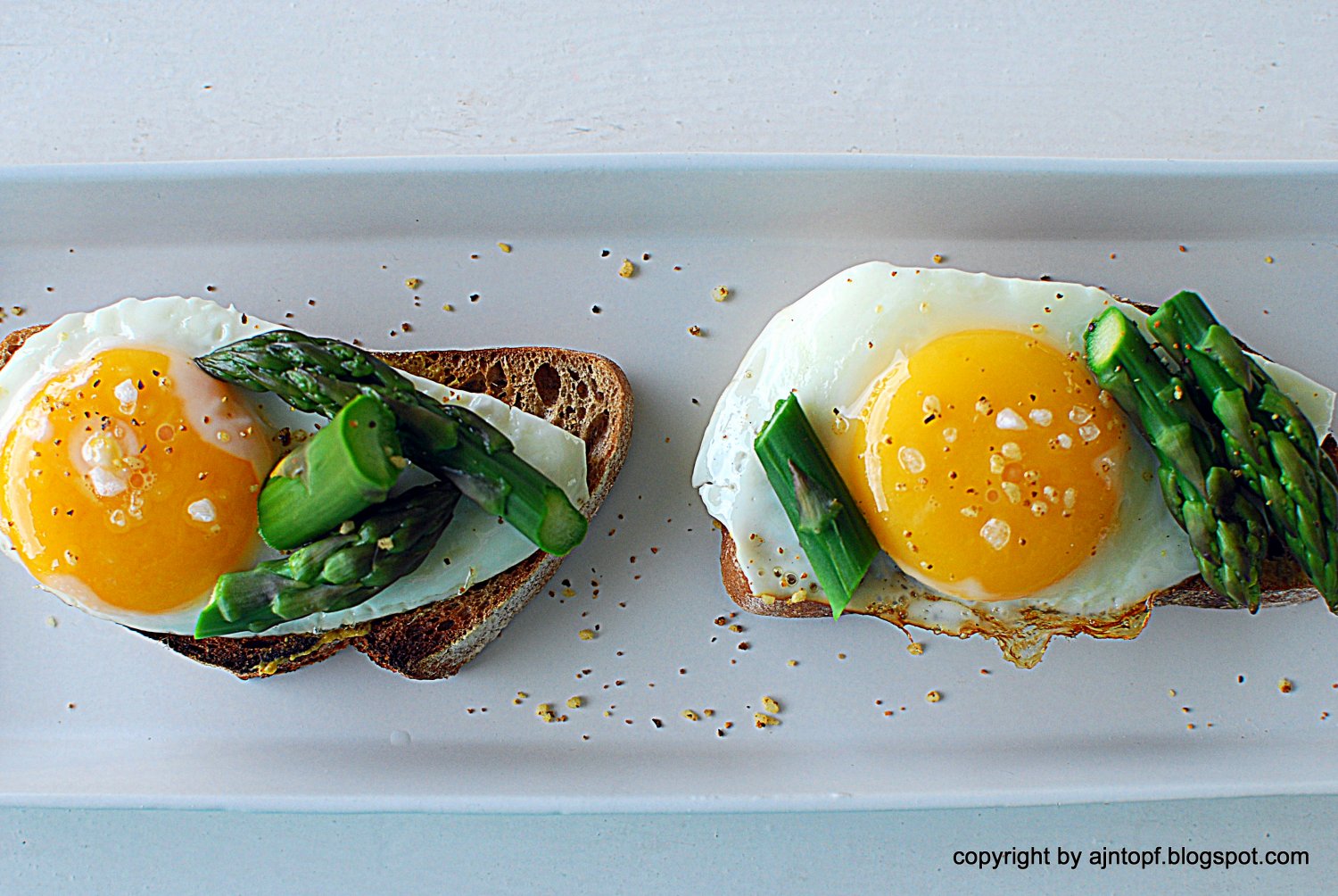 Wiadomo nie od dziś, że szparagi bardzo lubią się z jajami :) Dla złamania smaków dodaliśmy na grzankę odrobinę musztardy.