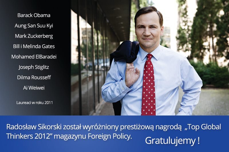 Minister Radosław Sikorski laureatem prestiżowej nagrody magazynu "Foreign Policy".