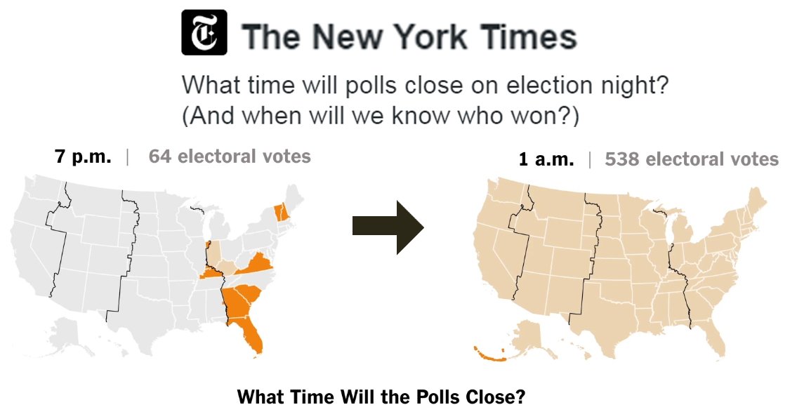 Ostatnie info z wyborów będą jutro o 7 rano naszego czasu, kiedy skończą się już ostatnie głosowania na Hawajach. Ale częściowe wyniki będziemy już mieli po Florydzie o 1 w nocy.
