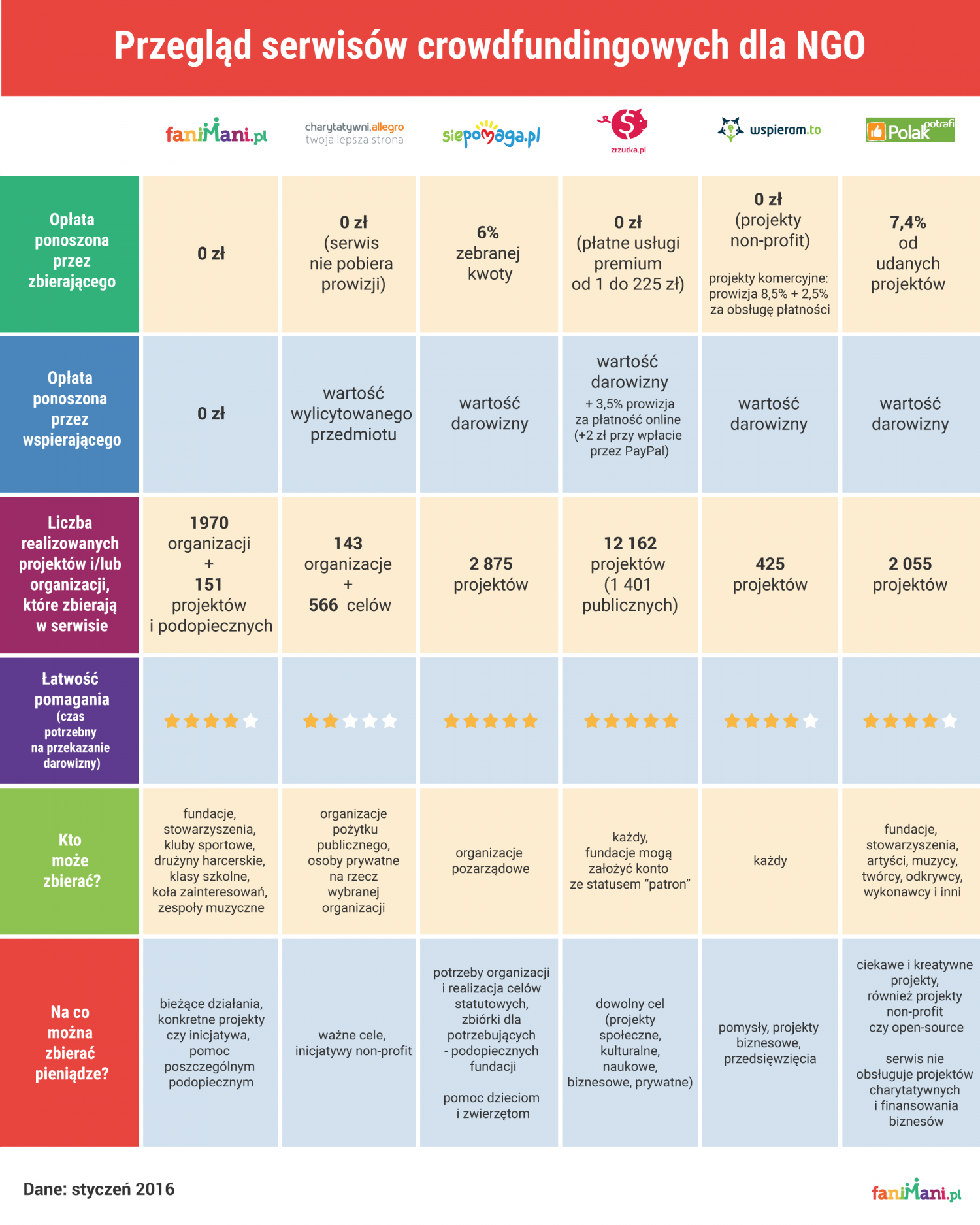 Organizacje społeczne szukają sposobów na finansowanie swojej działalności i okazuje się, że właśnie crowdfunding może być jednym z nich. Przyglądamy się bliżej serwisom, które pozwalają na zbieranie środków przez internet. Pod lupę wzięliśmy znane, polskie serwisy crowdfundingowe i sprawdziliśmy, czym charakteryzują się poszczególne z nich i czy wszystkie organizacje mogą zbierać pieniądze w ten sposób. Porównaliśmy je, biorąc pod uwagę między innymi to, czy korzystanie z serwisu jest płatne, sprawdziliśmy, na co można zbierać pieniądze oraz ile udało się zebrać do tej pory.