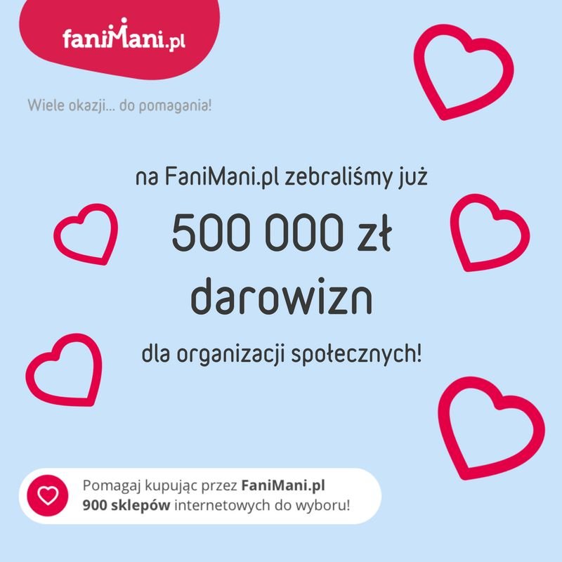 Dzięki zakupom zrobionym przez serwis FaniMani.pl organizacje pozarządowe w Polsce zebrały darowizny w kwocie przekraczającej 500 tysięcy złotych. Użytkownicy serwisu pomagają w ten sposób bezpłatnie, a ich wsparcie jest możliwe dzięki korzystaniu z FaniMani.pl przy okazji codziennych zakupów w internecie. Internauci w Polsce pokazują, że pomaganie jest trendy.