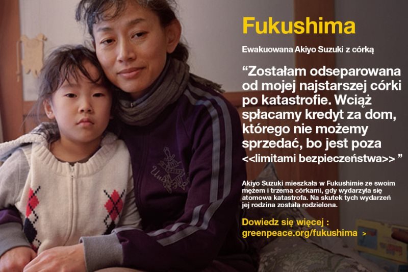 Zwolennicy energetyki jądrowej często bagatelizują tragedię do jakiej doszło w Fukushimie. Wielokrotnie słyszałam o tym, że właściwie nic się nie stało, sytuacja została opanowana a Japończycy poradzili sobie ze skutkami awarii. „Przecież to nie drugi Czarnobyl” – powiedział mi niedawno znajomy, podkreślając, że Greenpeace robi za dużo zamieszania wokół awarii i wyolbrzymia jej skutki. Kiedy słyszę takie słowa, wzbiera we mnie złość bo sytuacja w promieniu 100 km od uszkodzonego reaktora, nadal wygląda bardzo źle.