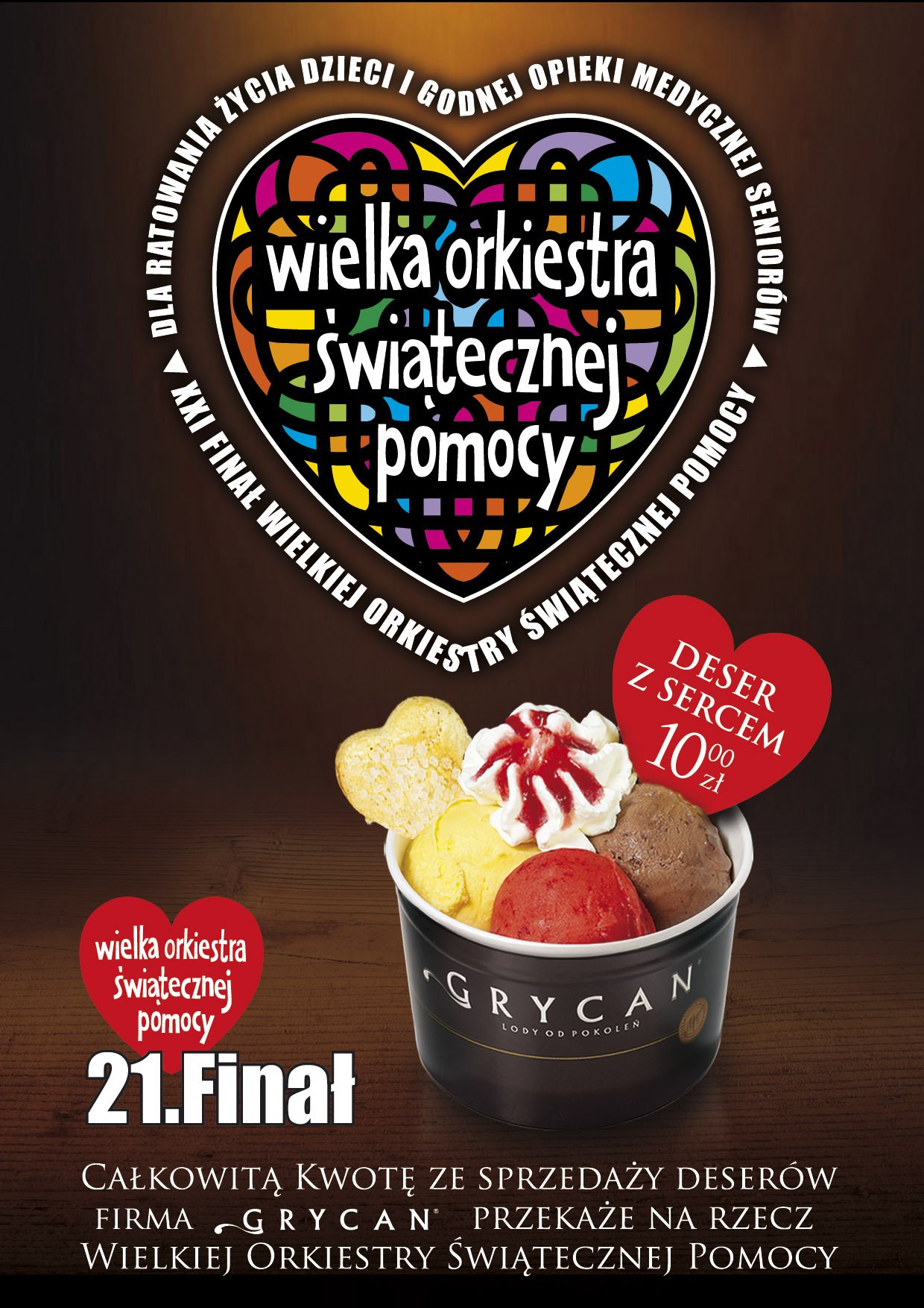 W naszych punktach wystawione będą też zwykłe puszki na datki. Już teraz serdecznie zapraszamy do naszych lokali na Deser z sercem i z góry dziękujemy wszystkim, którzy za naszym pośrednictwem zechcą wspomóc ten szlachetny cel.