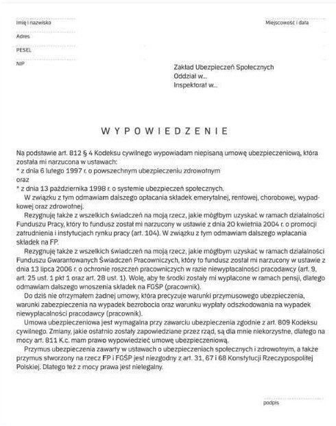 Obowiązek przynależności do ZUS jest niezgodny z konstytucją. Aby uchronić się przed głodową emeryturą należy już dziś złożyć wypowiedzenie umowy a tym samym ocalić swoje pieniądze.