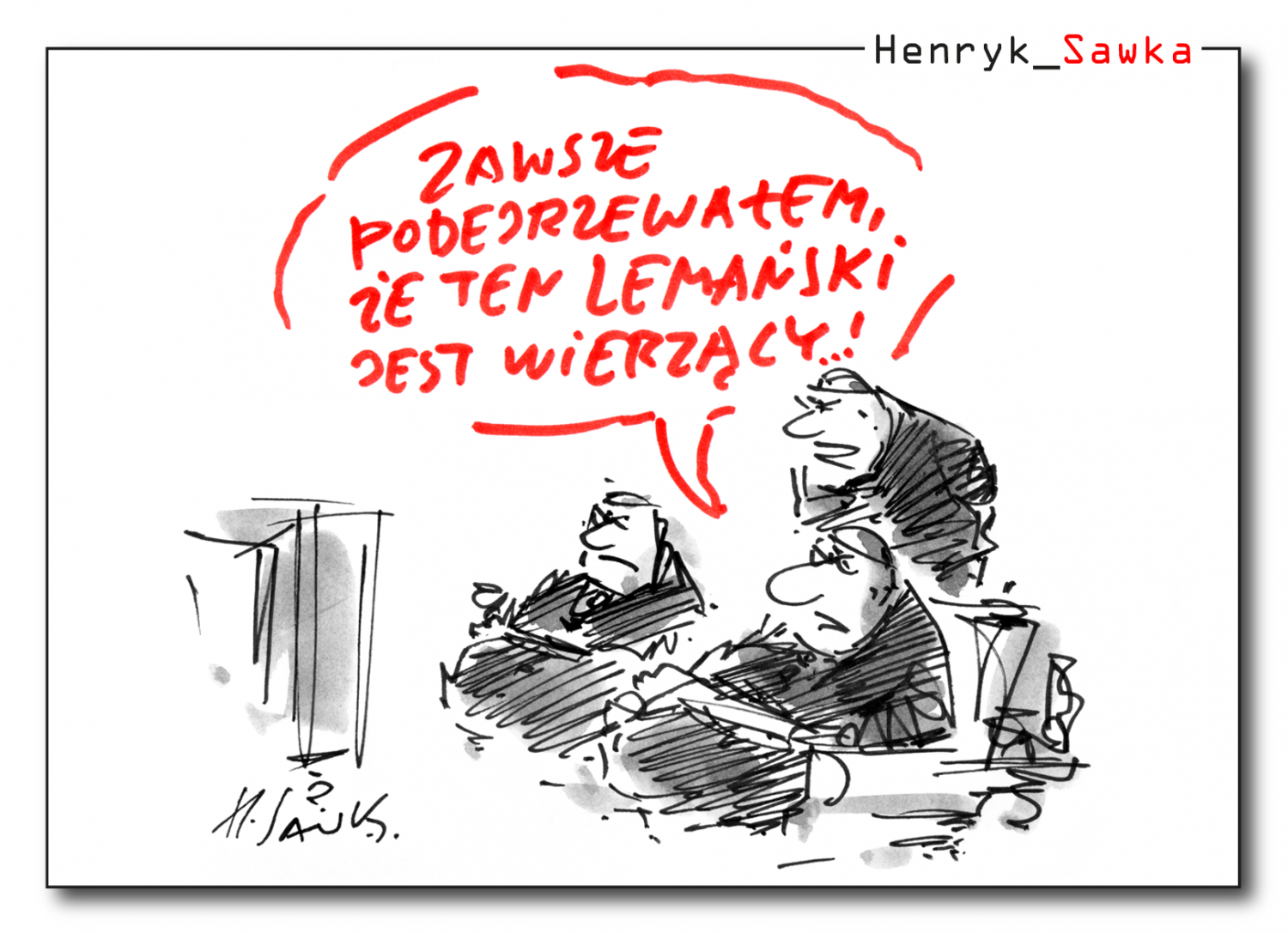 na:TematWiadomościSprawiedliwy wśród religii świata...Henryk Sawka 10 lipca 2013, 11:56·1 minuta czytaniaPublikacja artykułu: 10 lipca 2013, 11:56;-)REKLAMA Więcej? #rysunki, #animacje, #felietony lub na sawka.plNie przegap żadnej ważnej wiadomości i obserwuj nas w Google News! Więcej: HumorWojciech Lemański587Udostępnij: 587 Henryk SawkaObserwuj Henryk SawkaObserwuj
