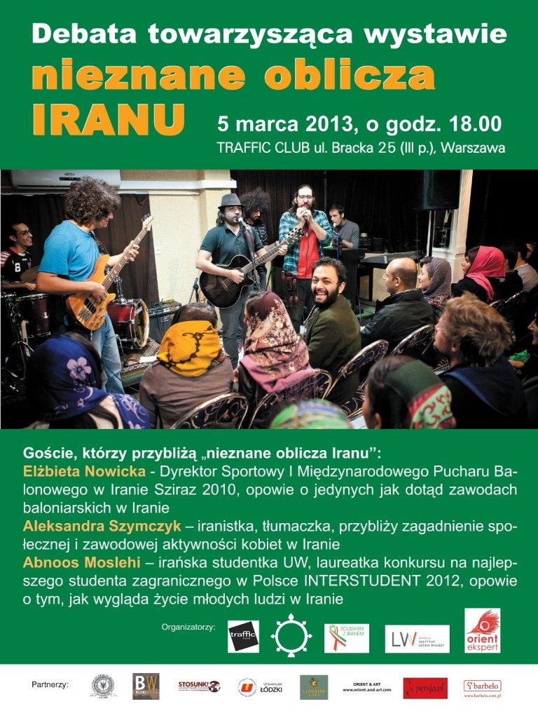 Zapraszamy serdecznie na debatę towarzyszącą wystawie „Nieznane oblicza Iranu”, która odbędzie się 5 marca 2013r. w Traffic Clubie przy ul. Brackiej 25 w Warszawie.