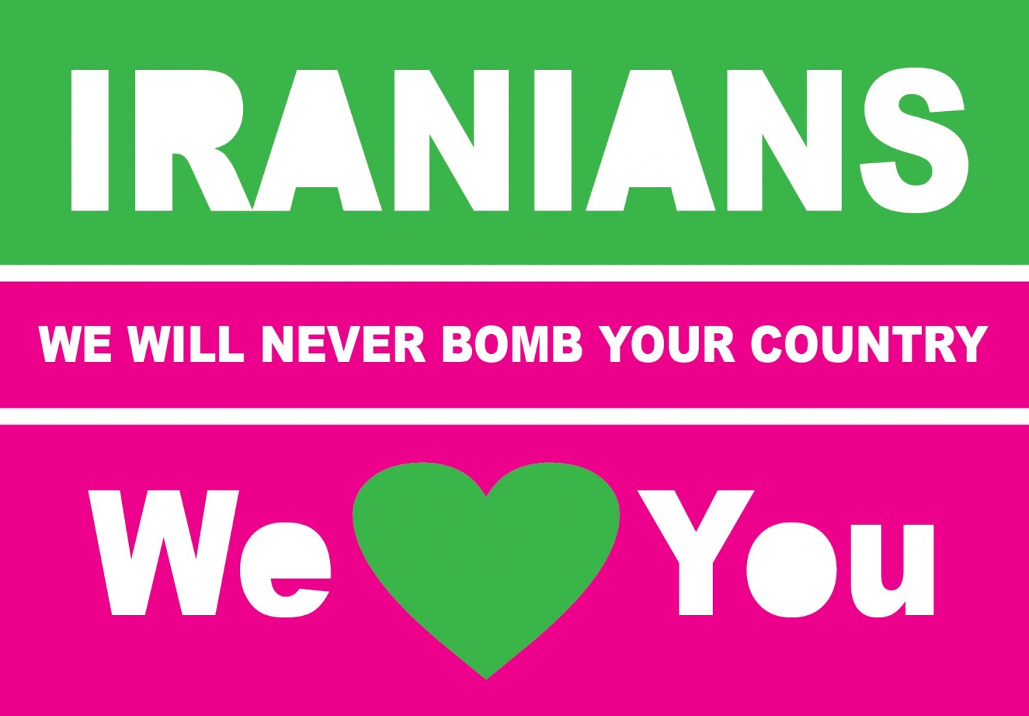 4 kwietnia uruchomiona została strona http://www.weloveiran.org/, na którą każdy może wrzucić swoje zdjęcie z wyrazami poparcia dla idei pokoju oraz wyrazami sympatii dla mieszkańców Izraela i Iranu.