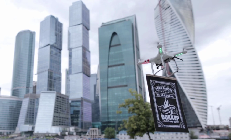 Wyobraź sobie, że jest pora obiadu. Ty od rana niewiele jadłeś. Jesteś w miejscu, do którego tradycyjne przekazy reklamowe nie docierają, bo na wysokim piętrze biurowca. Wyglądasz przez okno, żeby dać odpocząć zmęczonym oczom. A tam... Początkowo nie dowierzasz... Czy to ptak? A może helikopter? Nie! To dron z aktualnym menu obiadowym pobliskiego cateringu. Takim nietypowym kanałem komunikacji dociera do klientów moskiewska restauracja Wokker. Dla głodnego jak znalazł.