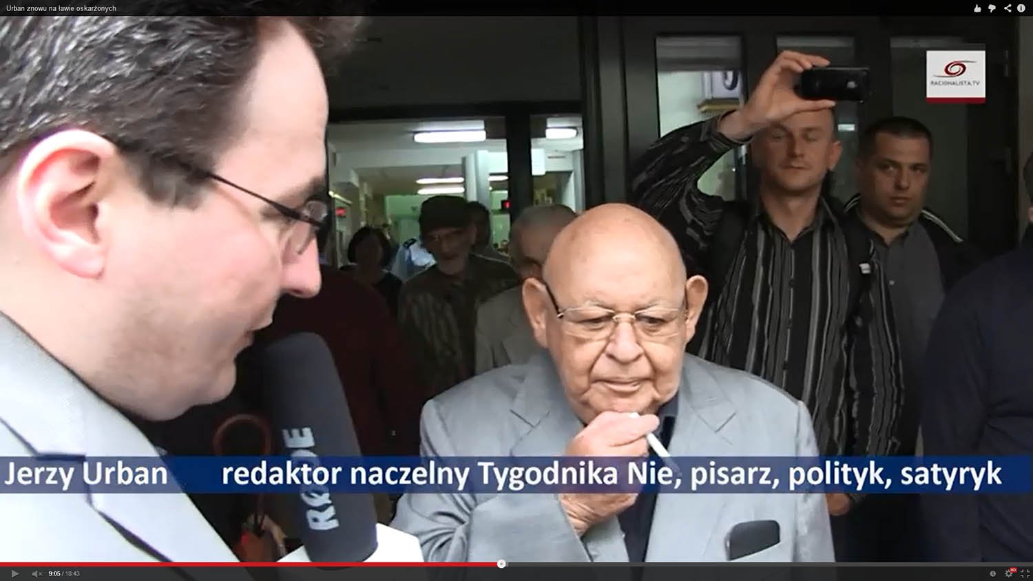 Wrażenie powrotu do średniowiecza było w tym warszawskim sądzie nieodparte. Urban, wiekowy już przecież, bronił się jednakże z błyskotliwością i swadą. W parlamencie europejskim nie znaleźli się niestety ludzie, którzy mogliby lobbować za laicyzmem w naszym kraju poprzez nacisk prawa ogólnoeuropejskiego. Cóż więc innego pozostało, jak wziąć kamerę na ramię i wraz z ekipą Racjonalista.tv towarzyszyć Urbanowi w walce z absurdalnym prawem dotyczącym obrazy uczuć religijnych. Oto efekt, w którym znajdziecie obok wypowiedzi Urbana, opinie oskarżyciela posiłkowego i obrońcy: