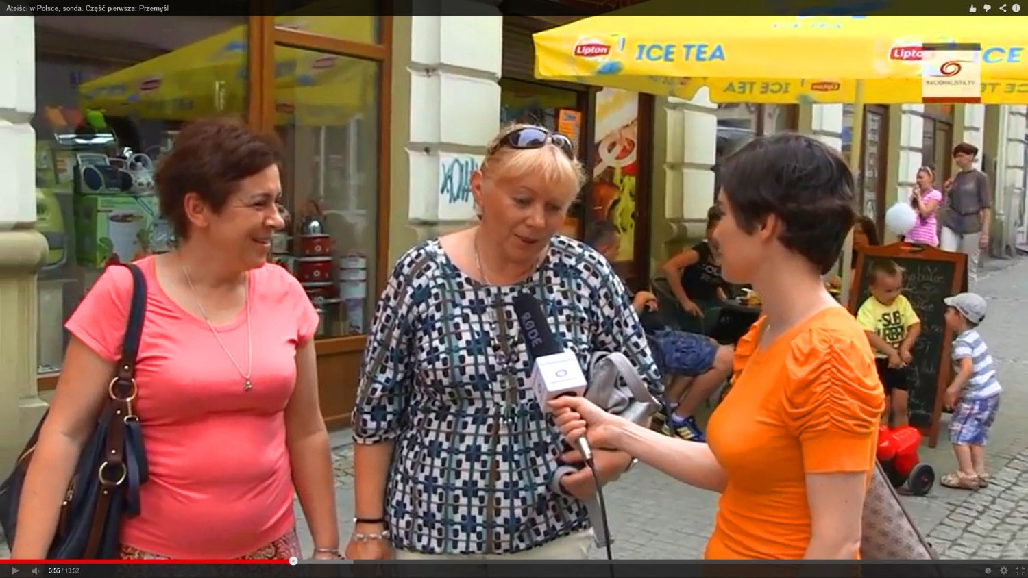 Robiliśmy sondę dla Racjonalista.tv w Przemyślu jakieś dwie i pół godziny. Zostały w niej ujęte wszystkie osoby, które zechciały się w tym czasie wypowiedzieć. Ku naszemu zaskoczeniu, jedyna osoba, która zadeklarowała ateizm pochodziła spoza Przemyśla. Przeważająca większość to byli katolicy.