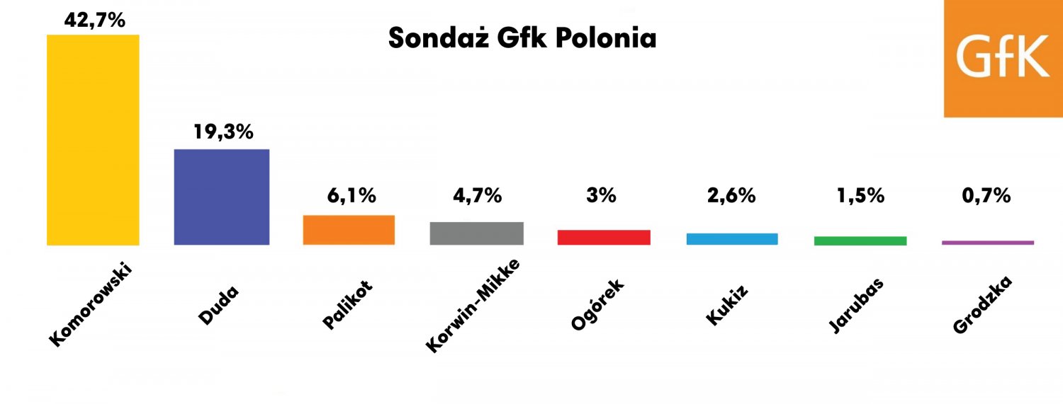 Najnowszy sondaż od Gfk Polonia pokazuje, że Janusz Palikot może liczyć na głosy od 6,1% deklarujących udział w wyborach, co daje mu 3. miejsce w wyścigu o urząd Prezydenta RP.