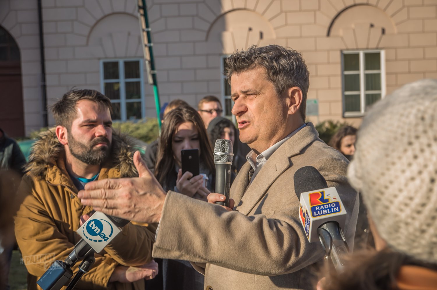 Nasz kandydat na Prezydenta jednak się nie zniechęcił i mimo przeciwności pojawił się pod budynkiem uczelni, gdzie wygłosił swój wykład. Mimo nietypowych okoliczności zainteresowanych słuchaczek i słuchaczy nie brakowało. Janusz Palikot rozpoczął od odniesienia się do zamieszania związanego z odwołaniem wykładu. – Uczelnia jest miejscem dyskusji, współczesną agorą. Decyzja o odwołaniu wykładu jest skandaliczna, władze uczelni powinny podać się do dymisji – podkreślał nasz kandydat.