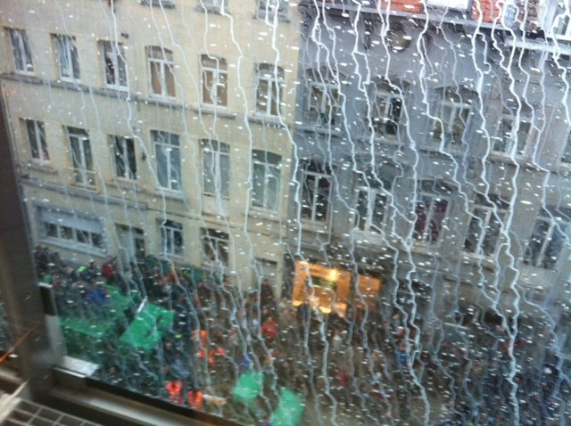 Ale dzisiaj Europarlament był otoczony nie tylko drutem kolczastym, ale również kordonami policji. A nam posłom nie pozwalano nawet zbliżać się do okien. Na okalających nasz budynek uliczkach demonstrowali mleczarze, protestujący przeciwko niskim cenom skupu mleka. Polewali Parlament mlekiem, palili kukły na szubienicy i opony, strzelali racami, jeździli ogromnymi traktorami.