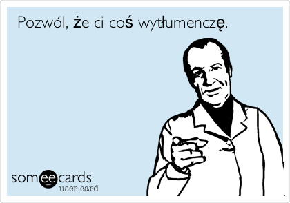 Męźczyźni lubią tłumenczyć innym mężczyznom, ale najbardziej lubią tłumenczyć kobietom. "Pozwól, że ci coś wytłumenczę" jest stwierdzeniem, które pada z ust każdego szanującego się mężczyzny w stosunku do znajomej albo nieznajomej przynajmniej raz w tygodniu.