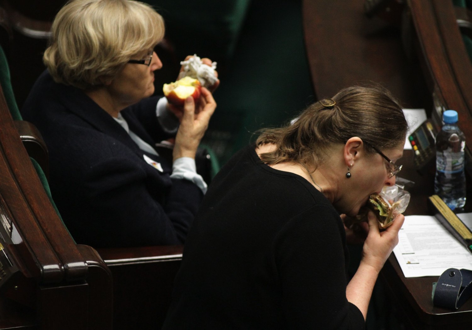 Często się to zdarza mężczyznom, jeszcze częściej kobietom, bo wiadomo, mężczyzna zna techniki samozaspokojenia. Może lepiej, ze posłanka czegoś takiego nie stosuje, bo przy tym braku hamulców, byłoby możliwe, że nagle zobaczylibyśmy rękę posłanki pod pulpitem... Och nie! Lepiej już, że jadła a nawet żarła.