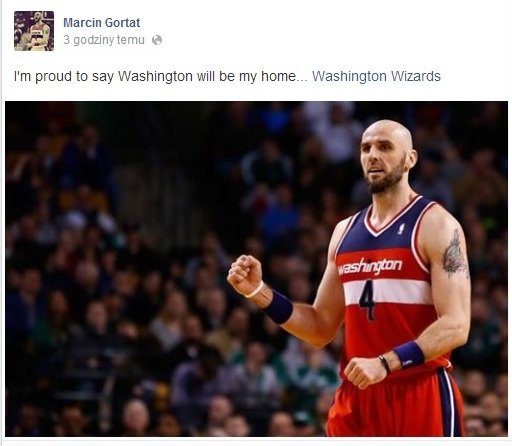 „Jestem dumny, że Waszyngton będzie moim domem” – napisał dziś w nocy na Twitterze Marcin Gortat.