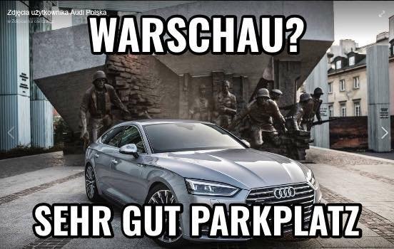 W internecie wielkie oburzenie, że Audi reklamuje się przed Pomnikiem powstania, na placu Krasińskich. Ale przecież to jest wyraz polonizacji naszych niemieckich sąsiadów, którzy przejmują nasze drogowe zwyczaje.