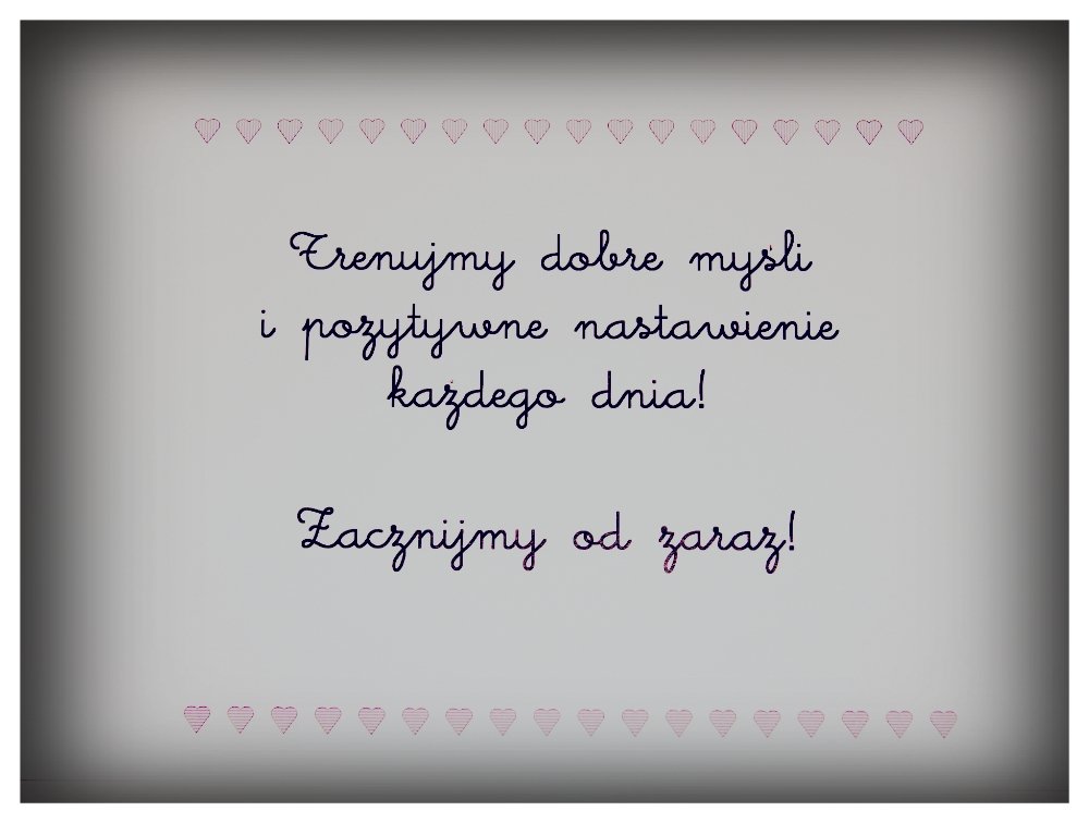 Wychodzę z założenia, że bardzo duży wpływ na własne samopoczucie mamy my sami. Kiedyś przeczytałam bardzo mądre słowa na stronie Beaty Pawlikowskiej. Mówiły one, że tak samo jak ćwiczymy mięśnie by je wzmocnić, tak samo powinniśmy trenować nasze dobre myśli, pozytywne nastawienie. Dlaczego by tak nie ćwiczyć swojej „głowy”? Może to właśnie w niej rodzi się nasza wewnętrzna siła? :)