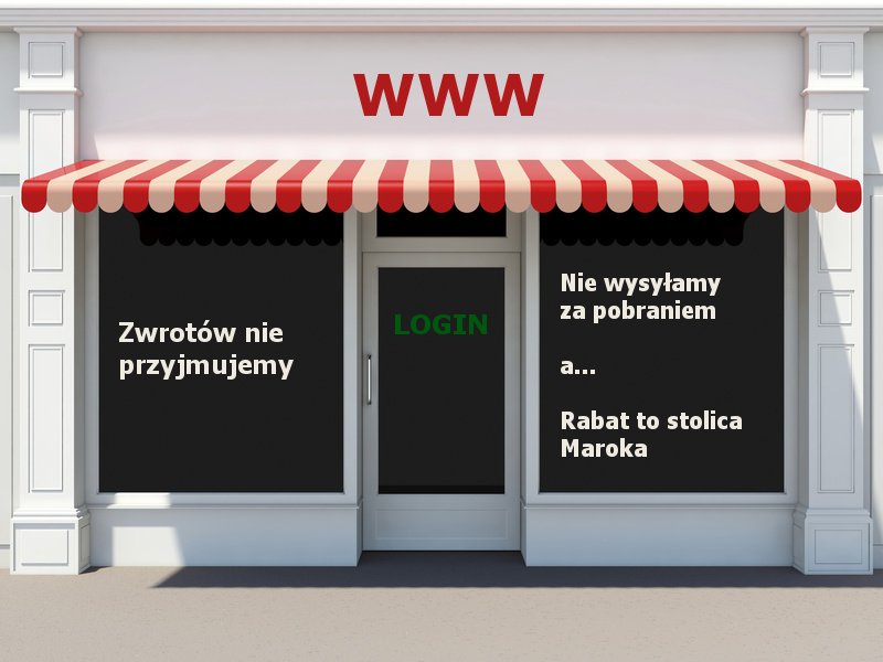 Dobra strona www, ciekawy asortyment, intensywna kampania w mediach społecznościowych sprawią, że nasz sklep, choćby mieścił się w garażu, sprawiał będzie wrażenie ekskluzywnego butiku. Jak pokazuje praktyka, świeżo upieczeni właściciele sklepów internetowych, konstruując prawne zasady działalności swojego sklepu, chętnie korzystają z niechlubnego dorobku konkurencji.
