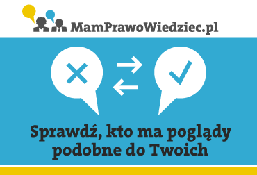 Właśnie dlatego zachęcajmy przyszłych parlamentarzystów do prezentowania informacji o sobie oraz do odpowiedzi na ważne pytania. W obywatelskim serwisie MamPrawoWiedziec.pl publikujemy kwestionariusze dla kandydatów. Dzięki odpowiedziom na pytania wyborcy mogą znaleźć kandydata o najbardziej zbliżonych poglądach i podjąć świadomą decyzję wyborczą.