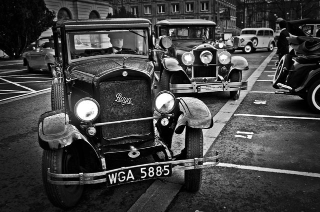Ileż radości! Wielkie, pokraczne smoki. Wolne, piękne i dystyngowane. Patrzyły oczodołami przerośniętych reflektorów. Kierowcy! Znawcy, prowadzili swoje bestie z godnością i poczuciem sprawstwa. W tle świeciły szklane ściany zielonkawego biurowca, padał deszcz.