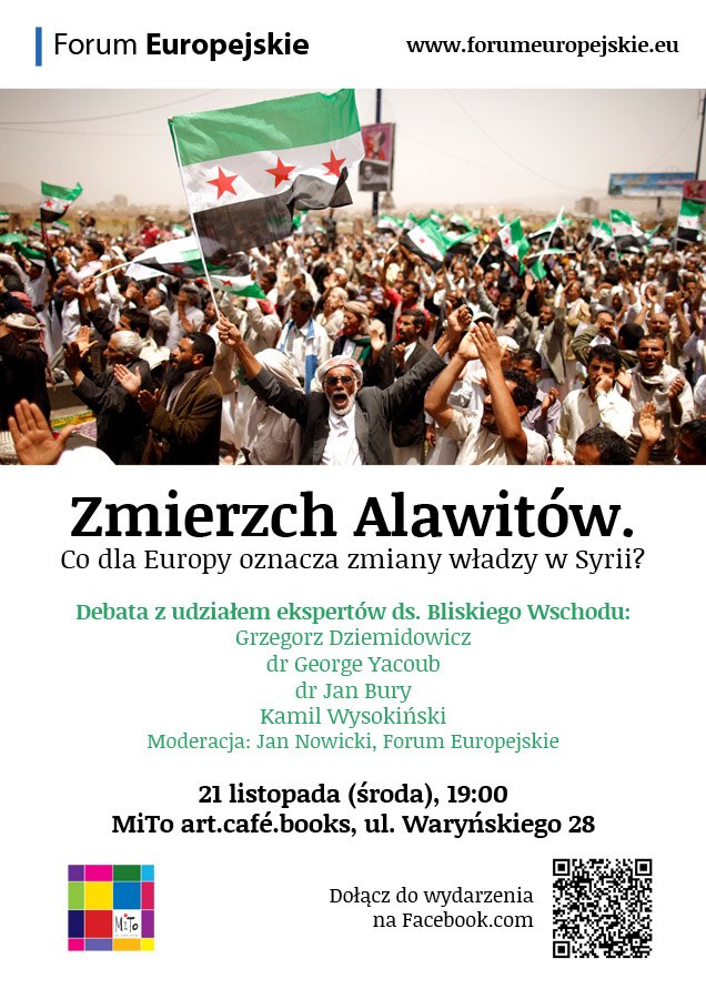 Aby wyjść naprzeciw oczekiwaniom tych, którzy szukają konkretnego i kompleksowego spojrzenia na kwestię syryjską, Forum Europejskie oraz MiTo art.café.books pragnie zaprosić na konferencję, w czasie której eksperci nakreślą możliwie najpełniejszy obraz ciągnącej się wojny domowej.