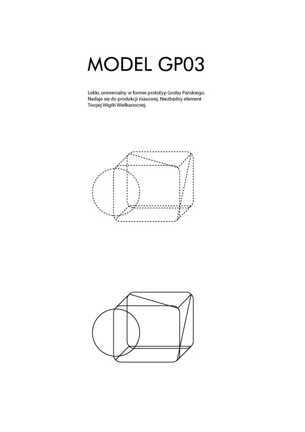 Projekt GP003 jest odpowiedzią na kompozycje Grobu Pańskiego w kościelnych wnętrzach, wynika z potrzeby obcowania z prostą, syntetyczną formą nawiązującą do źródeł Wielkanocy, do grobowca wykutego w skale.
