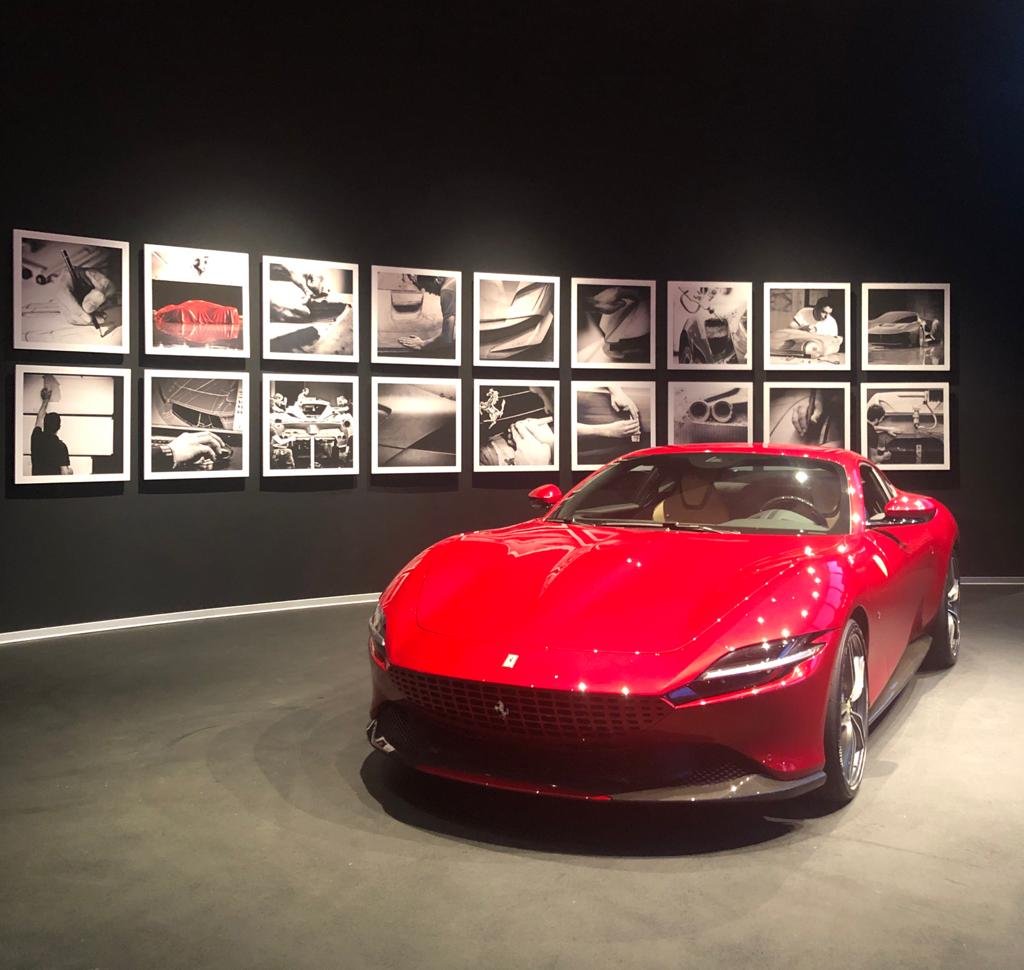 Szukając inspiracji, chcąc rozwiać watpliwości, co do wizji modelu, z która tu przyjechaliśmy robię spacer po Atelier. Dotykam, oglądam, decyduję spośród trzech kolekcji ściśle związanych z DNA Ferrari: Scuderia, Classica i Inedita.„ Scuderia” oparta jest na historii sportu Ferrari, oferując wybór materiałów, wykończeń i akcentów pochodzących z wyścigów.