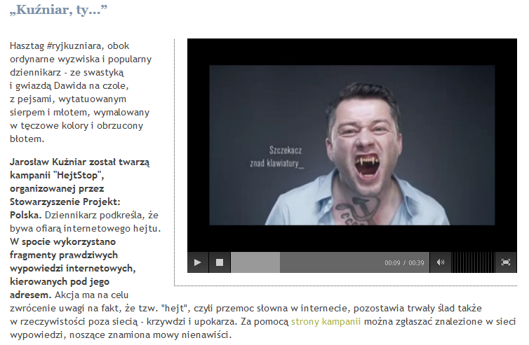 Natomiast uważam, że pomysł na niedawną kampanię społeczną z Kuźniarem jest doskonały.