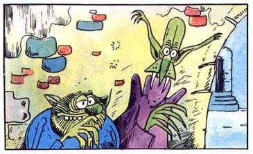 Wystarczy jeden rzut oka na Szlurpa i Burpa, by zauważyć, że bohaterowie wpadają w ten sam schemat fizycznej dysproporcji, co Flip i Flap czy tytułowe bliźniaki z filmu z Arnoldem Schwarzeneggerem i Dannym DeVito. Jeden jest wysoki i chuderlawy, drugi zaś niski i pulchniutki. Jeśli ów specyficzny wygląd połączyć z nawiązującymi do odgłosów trawiennych imionami, obraz jest dość jednoznaczny – Szlurp i Burp to urocze niedojdy. Na pierwszej stronie pierwszego opowiadania autor usiłuje nas wprawdzie zmylić, ale choć wyczekujący swej ofiary bohaterowie wyglądają jak rasowe zakapiory, my przeczuwamy już, co może ich czekać na stronie kolejnej.