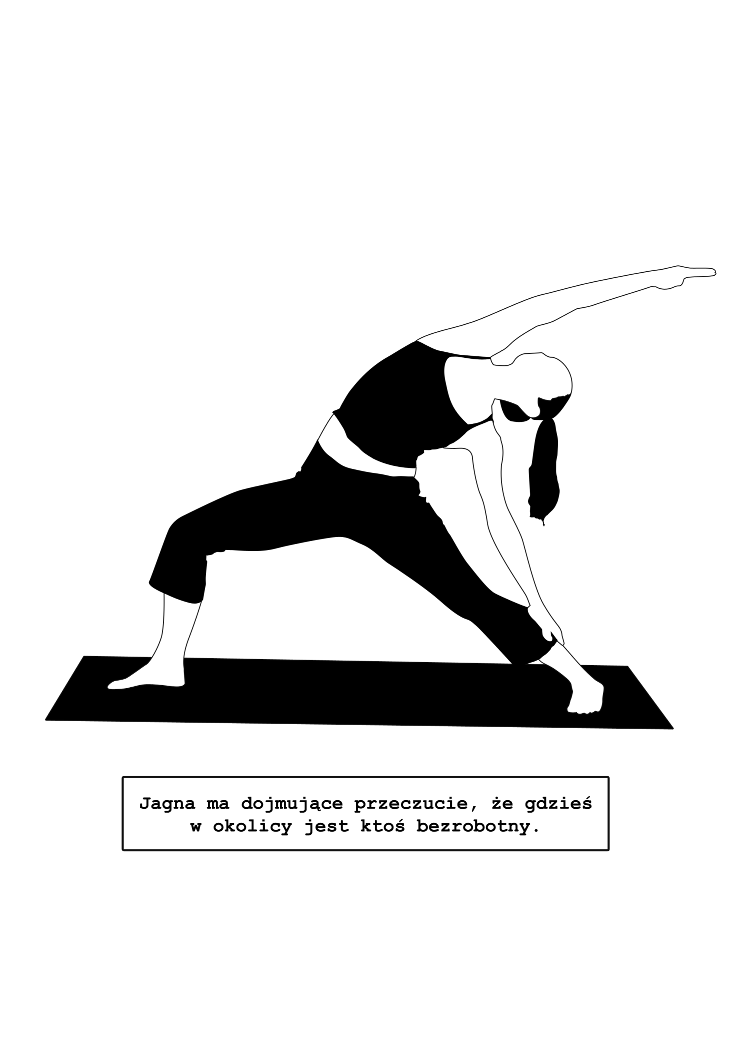 Sprawa Bolerki utknęła gdzieś w prokuraturze, w końcu prawnik za coś te 10 tysięcy przytulił. W teleekspresowym skrócie: Król Bakalii wciąż nieprzytomny, ale podobno do wesela się zagoi. Oby. Tymczasem na bezrobociu odkrywam uroki życia. Czeską prozę czytam. Obserwuję. Czy wiecie więc, że gdy rano po bieganiu jem jajecznicę, urodziwa sąsiadka ćwiczy właśnie jogę na tarasie? A jajecznica stygnie...ale skoro o kobietach – bezrobocie ma też ciemne strony. Ja, jeszcze niedawno business development director (cokolwiek to znaczy) zostałem bez asystentki. Odcięto mi rękę.