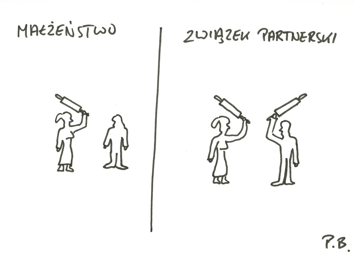 na:TematnaTemat extraZwiązek partnerskiPrzemysław Borkowski 07 lutego 2013, 12:32·1 minuta czytaniaPublikacja artykułu: 07 lutego 2013, 12:32Od dłuższego już czasu zastanawiam się, jaka jest różnica między małżeństwem a związkiem partnerskim?REKLAMA Oto możliwa odpowiedź.Nie przegap żadnej ważnej wiadomości i obserwuj nas w Google News! Więcej: Związki partnerskieHumor21Udostępnij: 21 Przemysław BorkowskiObserwuj Przemysław BorkowskiObserwuj„Ten najwyższy” z Kabaretu Moralnego Niepokoju. Autor sentencji: „Najłatwiej jest robić rzeczy, których się nie umie”