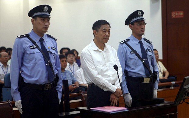 W końcu rywale wyciągnęli mu szereg wstydliwych spraw. Łapówki ( przyjmowane i wręczane), willa na południu Francji, dziwne interesy w tym z obcokrajowcami, a zwłaszcza Brytyjczykiem Neilem Heywoodem, którego miała zamordować małżonka skazanego, Gu Kailai ( za co otrzymała zaoczny wyrok śmierci zamieniony na dożywocie, a od której teraz w czasie procesu Bo stanowczo się odcina nazywając ją „szaloną”).