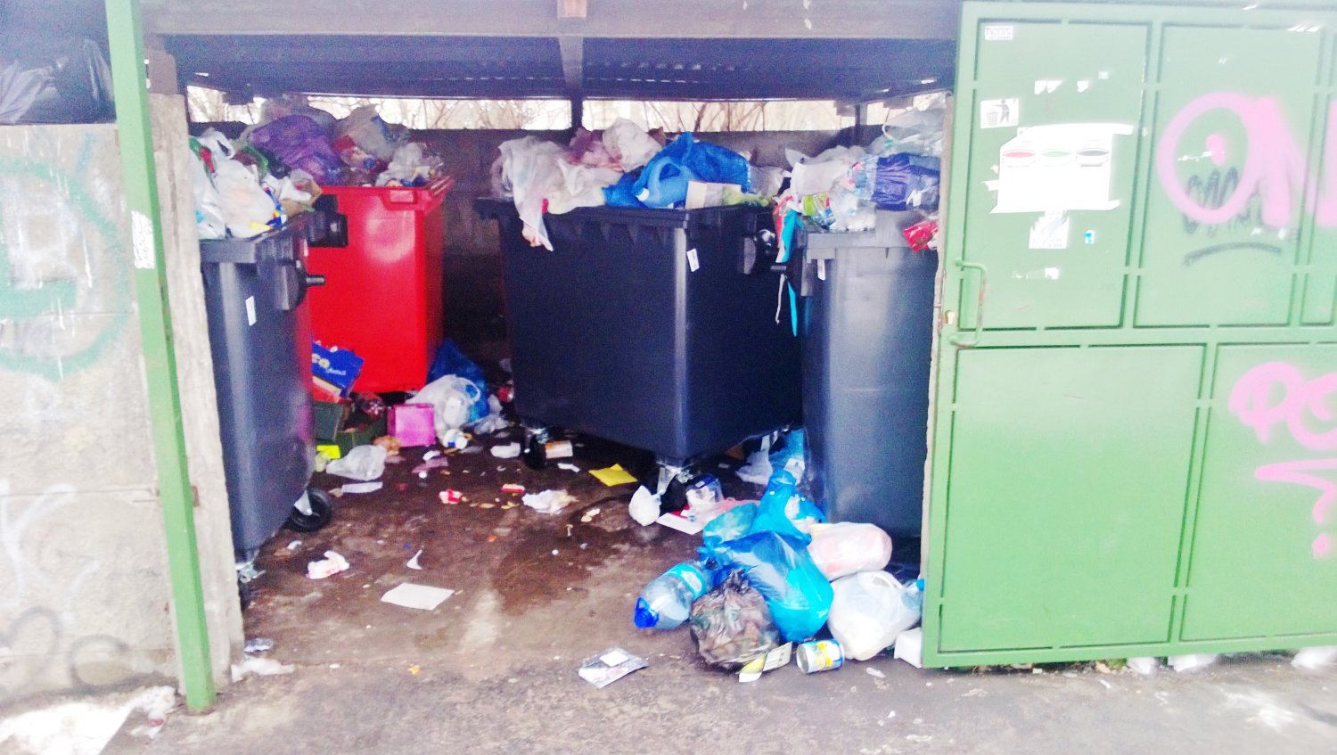 W pierwszych dniach lutego nowa firma sprawiała wrażenie jakby sama była zdziwiona wygraną. Tym bardziej umacnia się obawa, czy w pogoni za kontraktem firma nie przeceniła swoich możliwości. Przez pierwsze dni, zamiast wziąć się z marszu do pracy, emisariusze firmy chodzili i rozpytywali mieszkańców o nazwy ulic i rejony składowania odpadów a śmieci przybywało. Poniżej publikuję zdjęcia – jedno z dnia 6 lutego z drobną zapowiedzią kataklizmu i dwa pozostałe z 10 lutego (rano) pokazujące narastanie dramatu. Taka sytuacja zdarzyła się pierwszy raz od bardzo wielu lat dlatego może reakcja mieszkańców jest zbyt ostra, ale wolimy dmuchać na zimne.